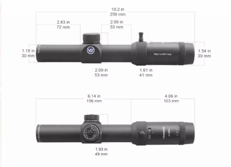 Механика. Низкие барабанчики выверки не мешают наблюдениям «поверх» прицела, а от дождя и случайного сбоя настроек закрываются крышечками на резьбе. Клики чёткие и негромкие, в 1⁄2 MOA. Диапазон выверки очень внушительный - 100 MOA как по вертикали, так и по горизонтали. На все регулировочные механизмы и съёмные крышки маховичков нанесена накатка с рисунком из пересекающихся насечек — для улучшения сцепления при вращении и комфортной работы в перчатках. Кроме того, кольцо-трансфокатор оснащено рычажком-упором для быстрой и точной смены увеличения.